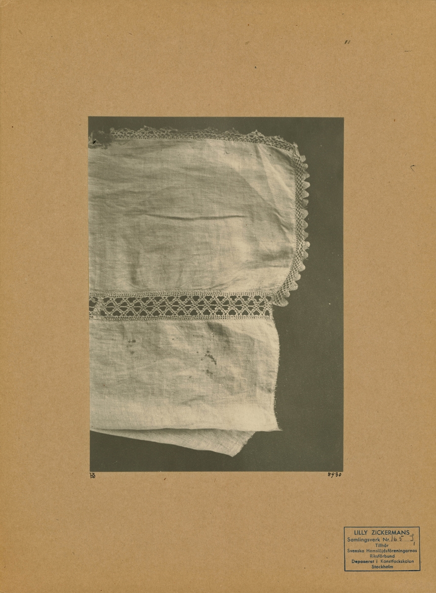 Titel: Tyg med infälld, knypplad spets
