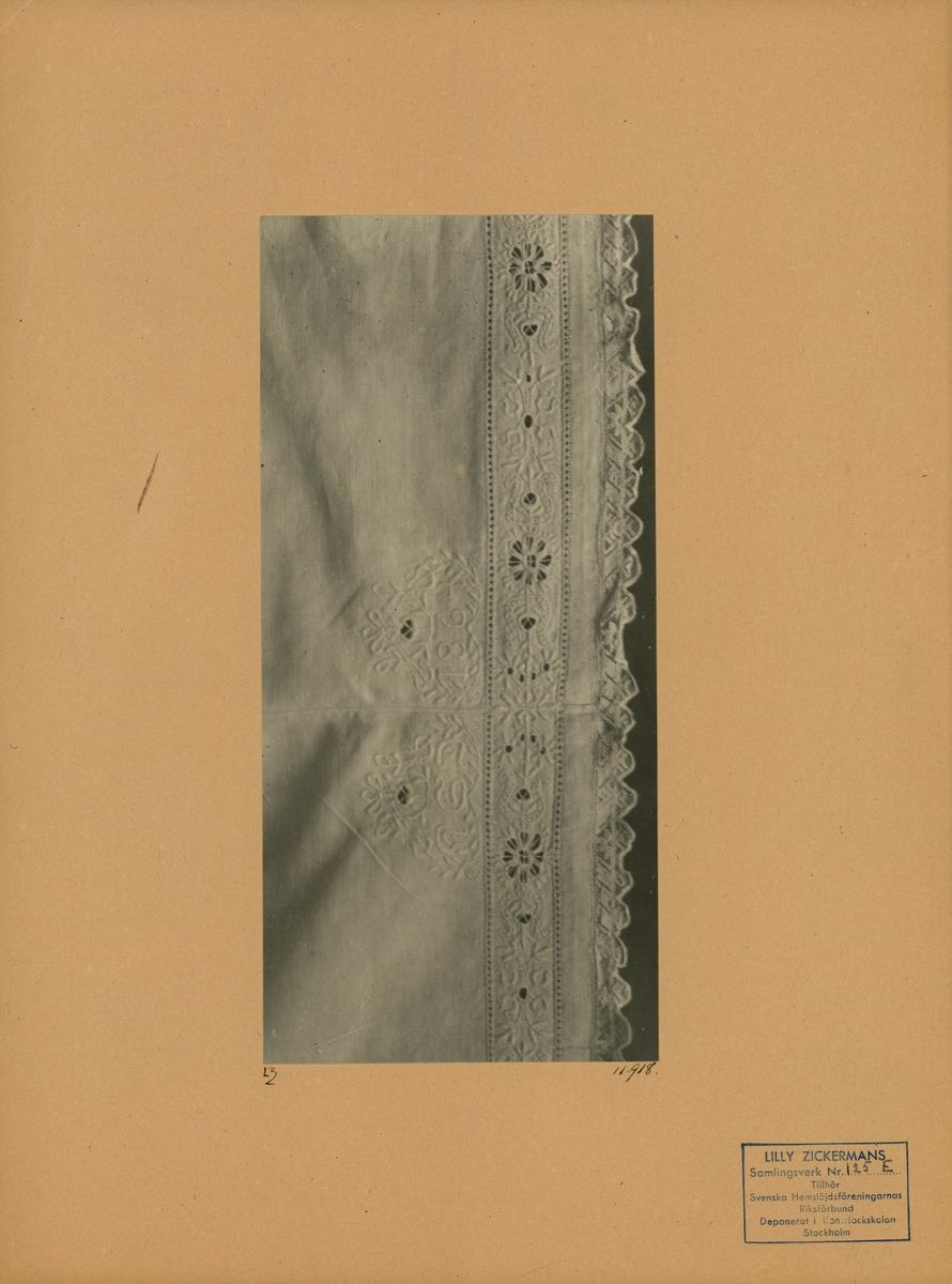 Lakan med fritt broderi.
