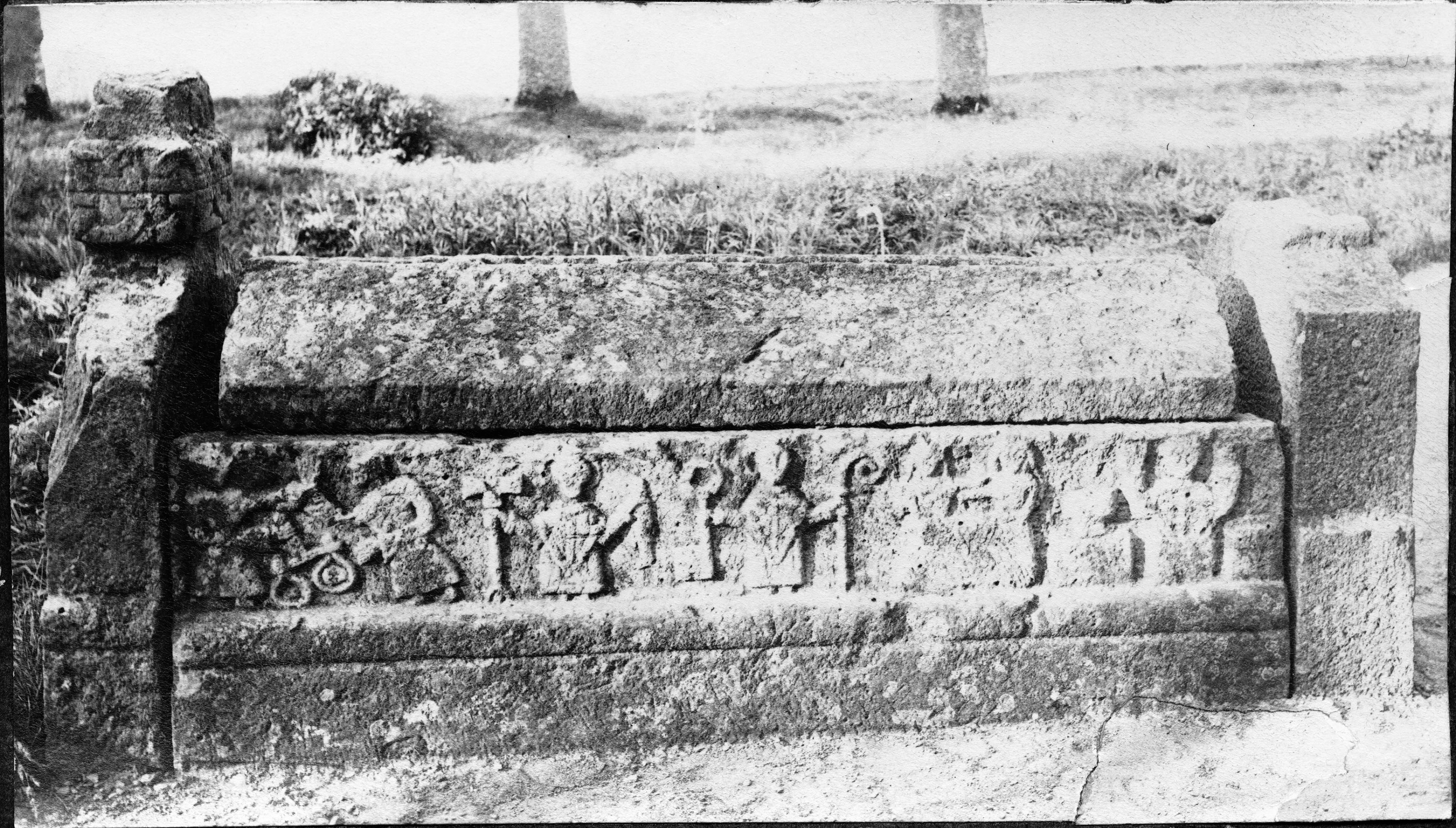Gravmonument, det norra, vid kyrkans västra sida.