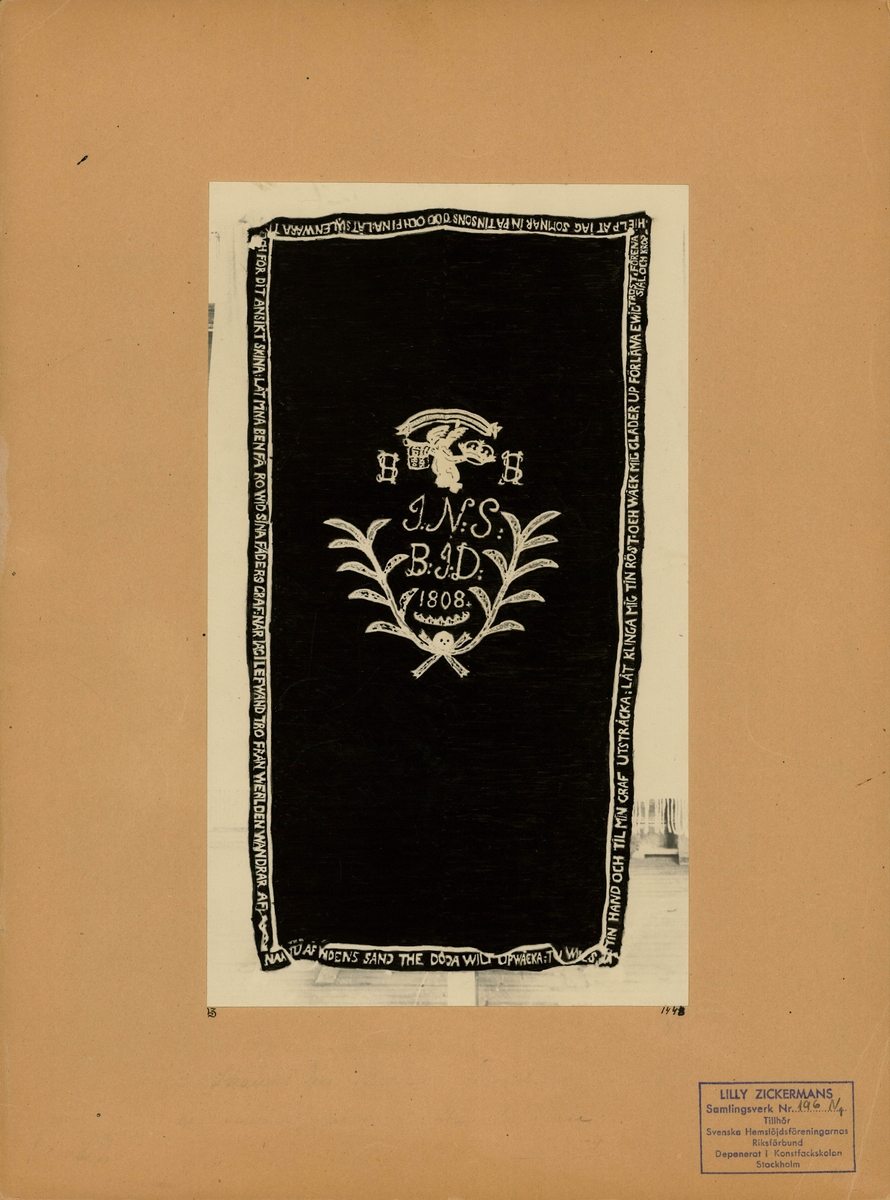 Bårtäcke med fritt broderi.