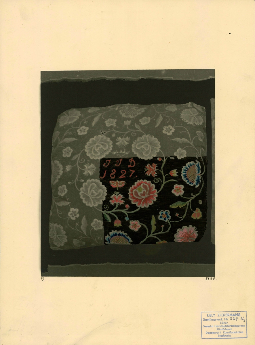 Kudde med fritt broderi.