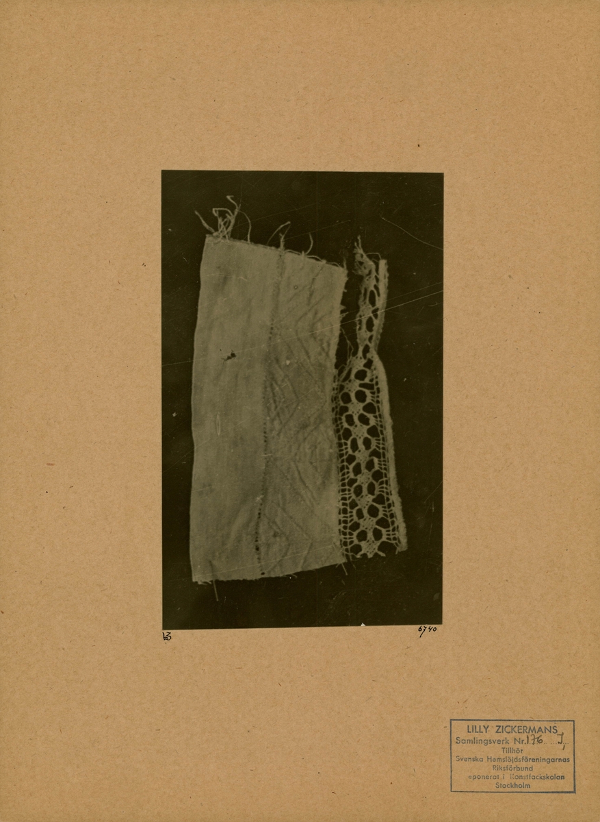 Broderad tygbit kantad med knypplad spets