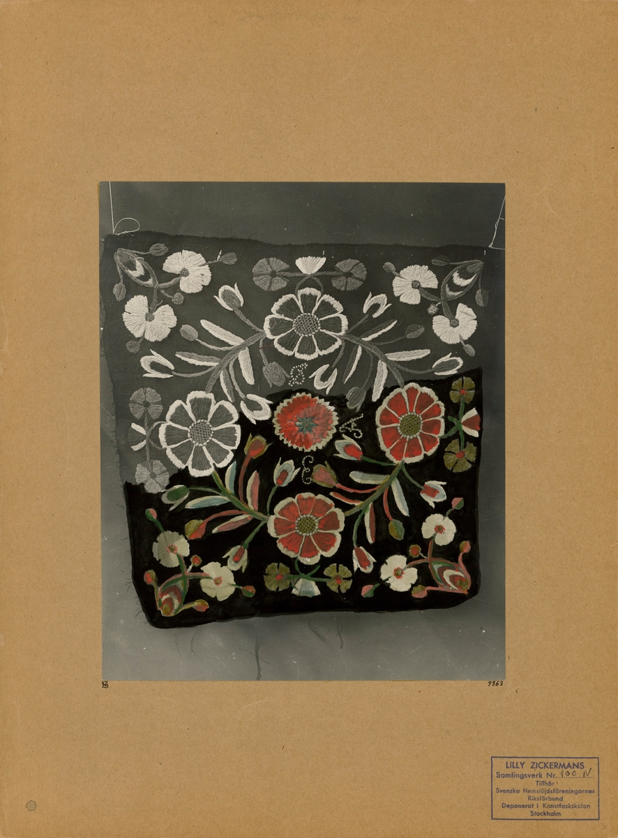 Kudde med fritt broderi.