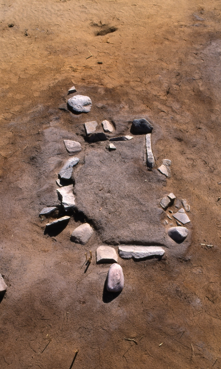 Stensättningen G3 på gravfältet RAÄ Barnarp 171, L1971:1158 på Torsvik i Jönköping. Första bilden är tagen från NNO och andra från SSV. Till vänster på första bilden syns en omkullfallen syndport. I graven fanns ingen begravning i form av brända ben men en järnkniv påträffades snett nedstucken i marken inom anläggningen, dessutom påträffades krossad över hela anläggningen.