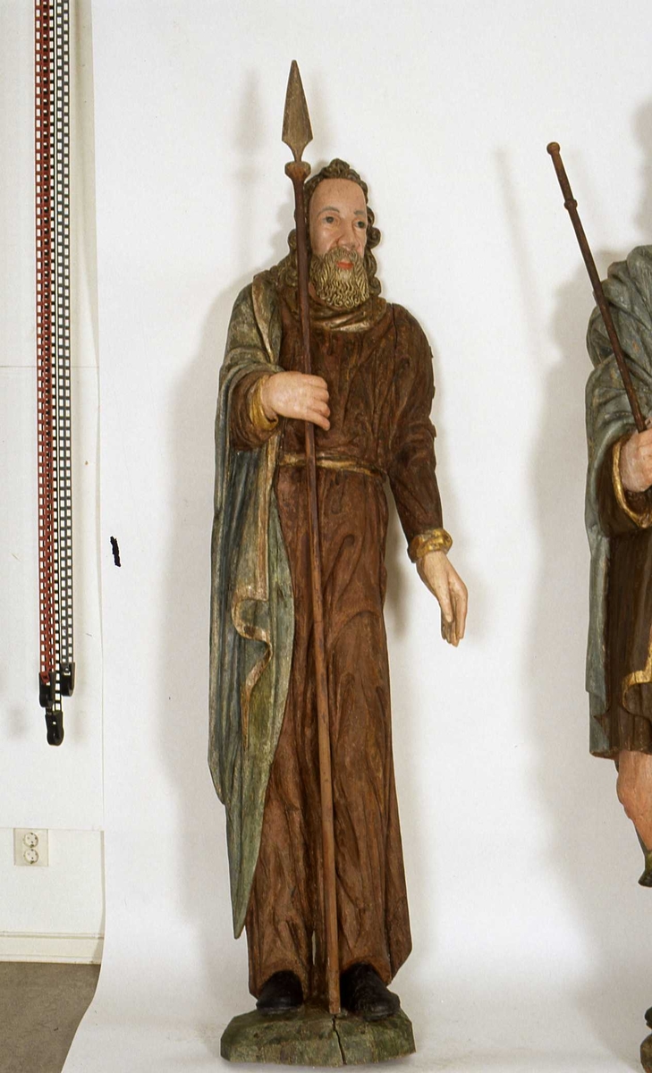 Träskulptur föreställande aposteln Tomas i Brahekyrkan på Visingsö, Jönköpings kommun.