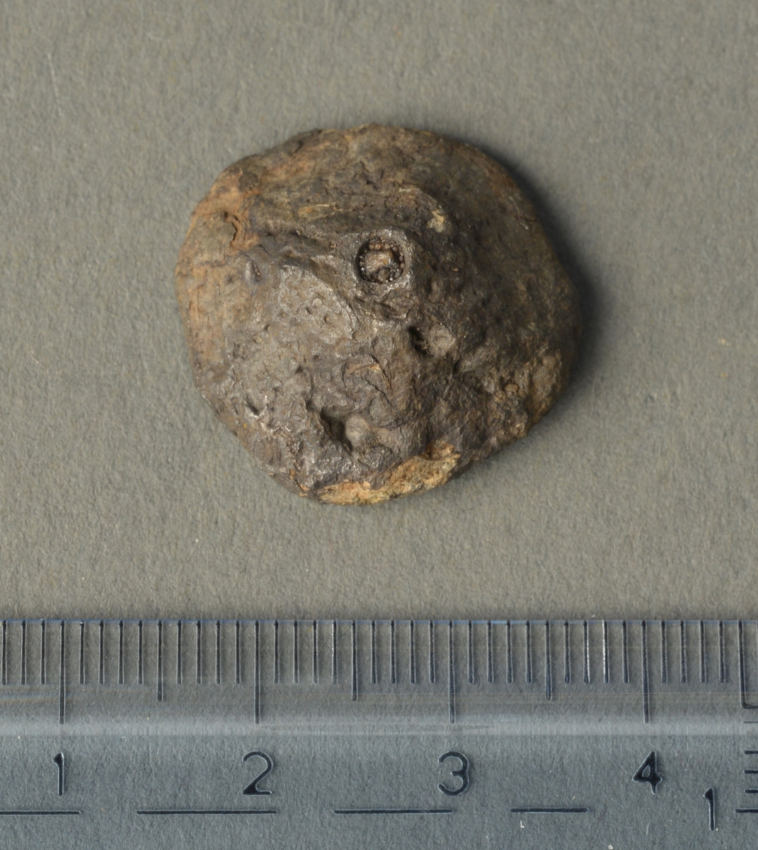Föremål, eventuellt en vikt, funnen vid metalldetektorundersökning i sjön Vidöstern, Tånnö socken i Värnamo kommun.