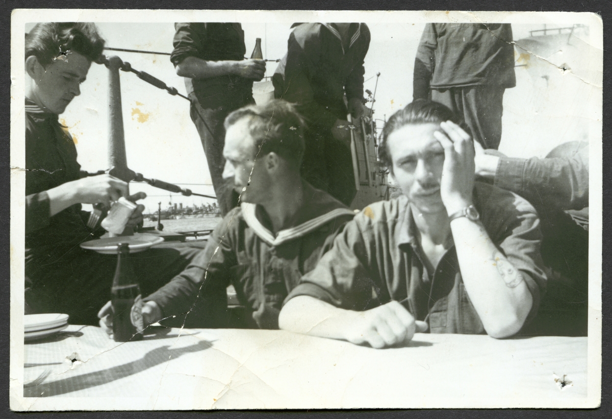 Bilden visar sjömän ombord som drickar öl.
