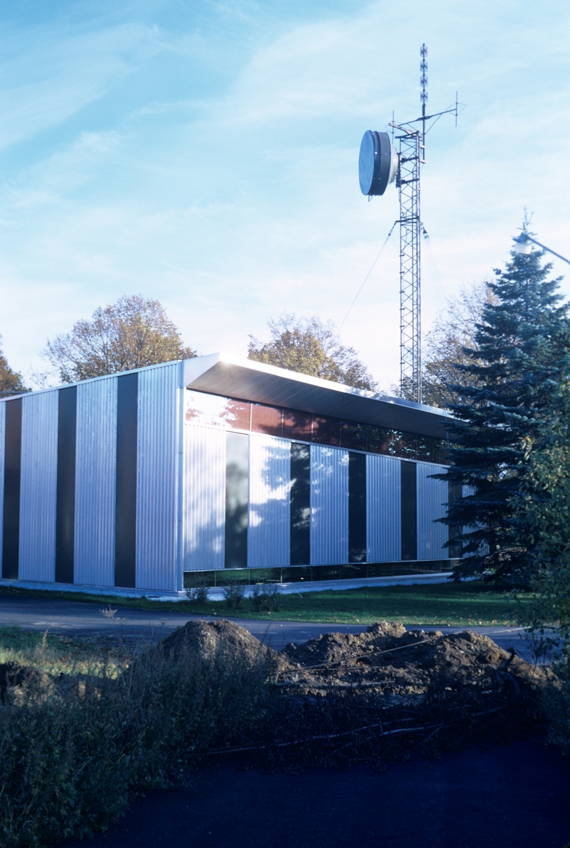 Exteriör av Östgöta kontrollcentral (ÖKC) på Bråvalla, hösten 1973. Serie om 2 bilder.