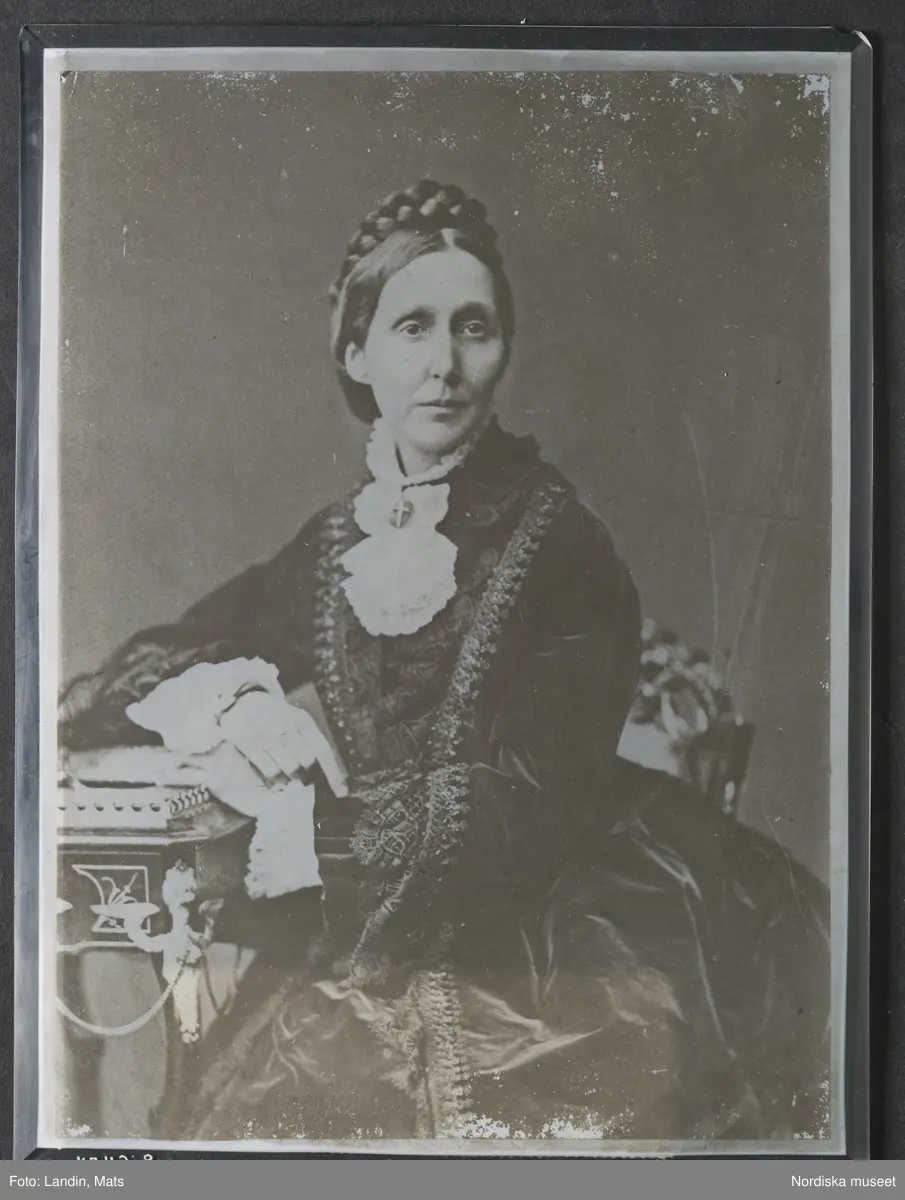 Porträtt av prinsessan Eugenie (1830-89). Fotografi på glas, okänd teknik. Från Oscar II:s skrivrum. Nordiska museet inv.nr 266454.