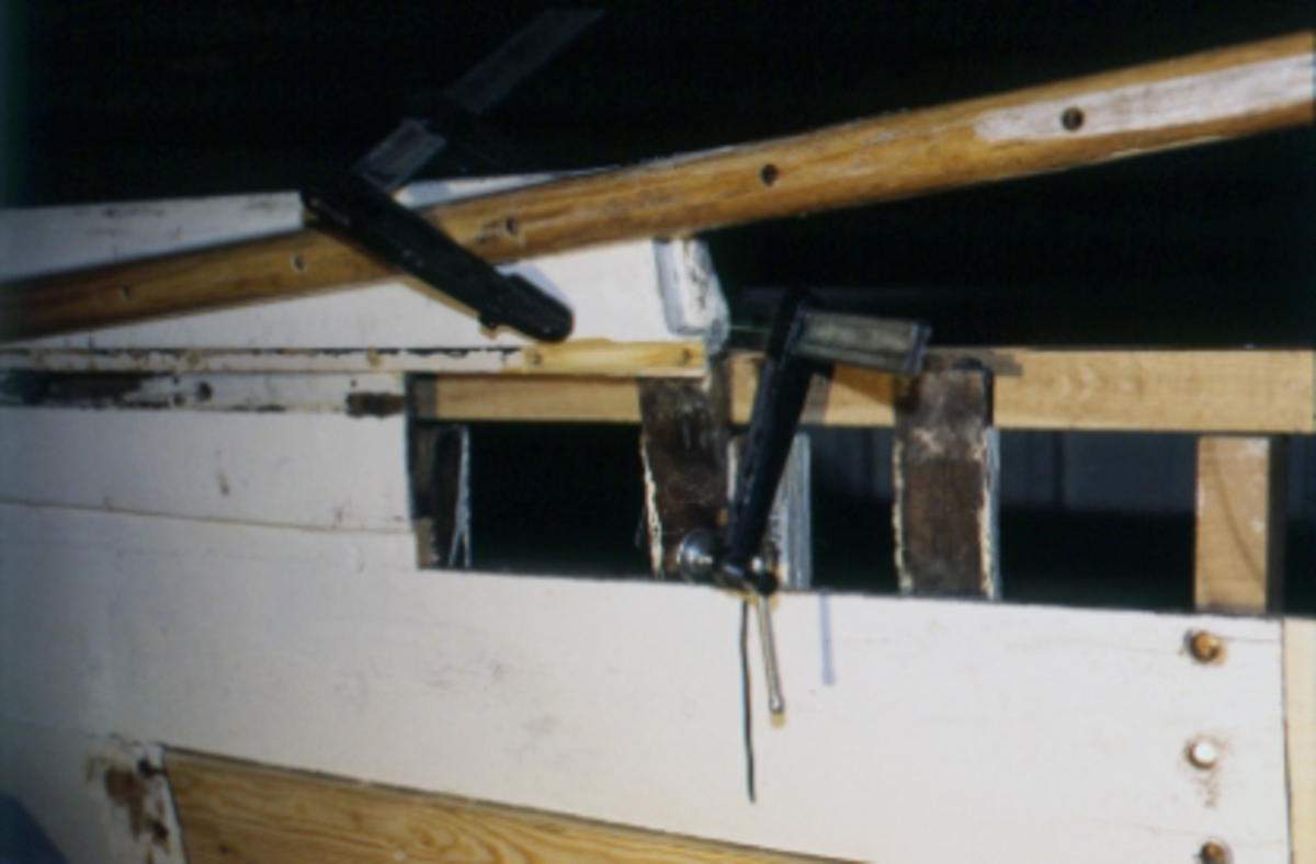 skador på bark, uppkomna i samband vid angöring utanför slup o barkasskjulet på stumholmen