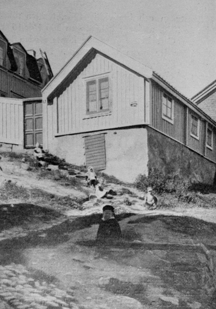 Gula stugan, hörnhuset vid Henrik trollesgatan och Björkholmsplanen.