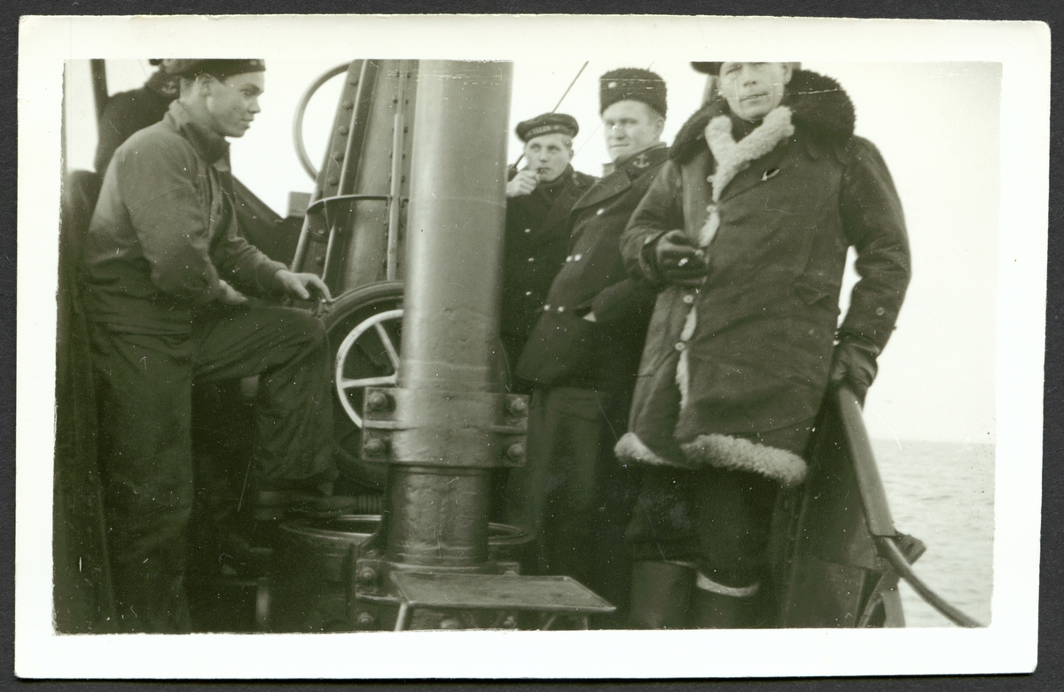 Bilden förställer en grupp ubåtsmän på däck av ubåten valen tills sjöss.