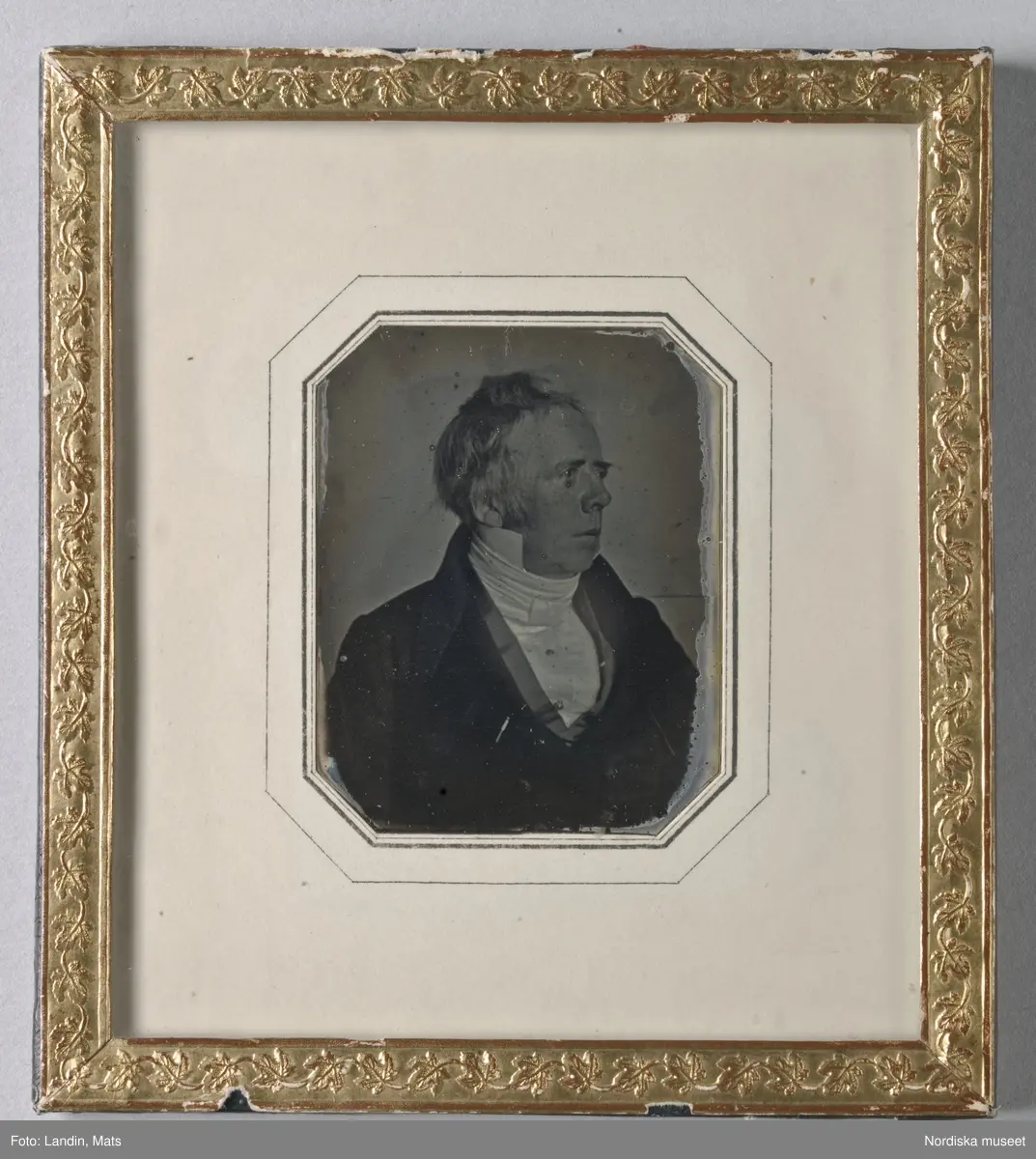 Porträtt i profil av den danske fysikern och kemisten Hans Christian Ørsted (17771851). Dagerrotyp / daguerreotyp, 1840-tal. Nordiska museet inv.nr 22204.