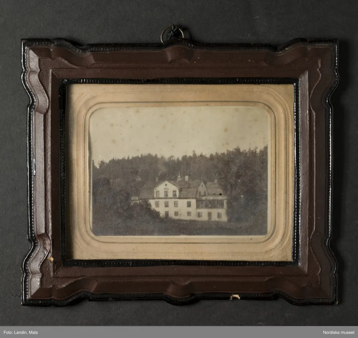Fotografi i ram. Föreställer Ehrendals mangårdsbyggnad, Ehrendal, Frustuna socken, Södermanland. Ca. 1860-tal.