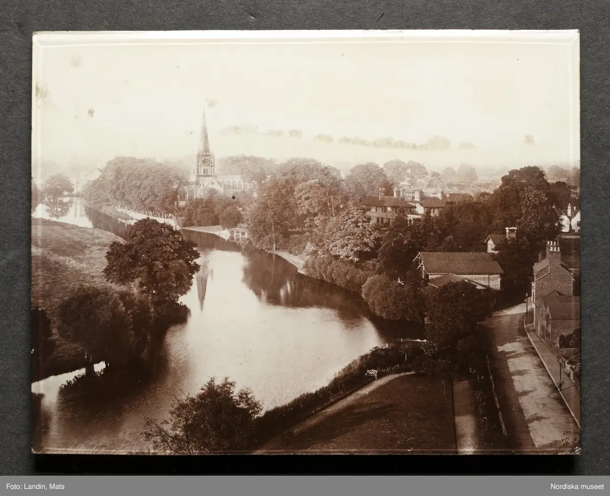 Fotografi på glas. Vy över Stratford on Avon, England. Nordiska museet inv.nr 199113.