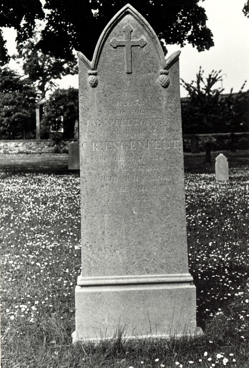 Text: Här hvilar stads fogden J.M. Appeltoffts ömt älskade maka C.R. Engenfelt född d. 14 maj 1804 död d. 16 febr. 1856