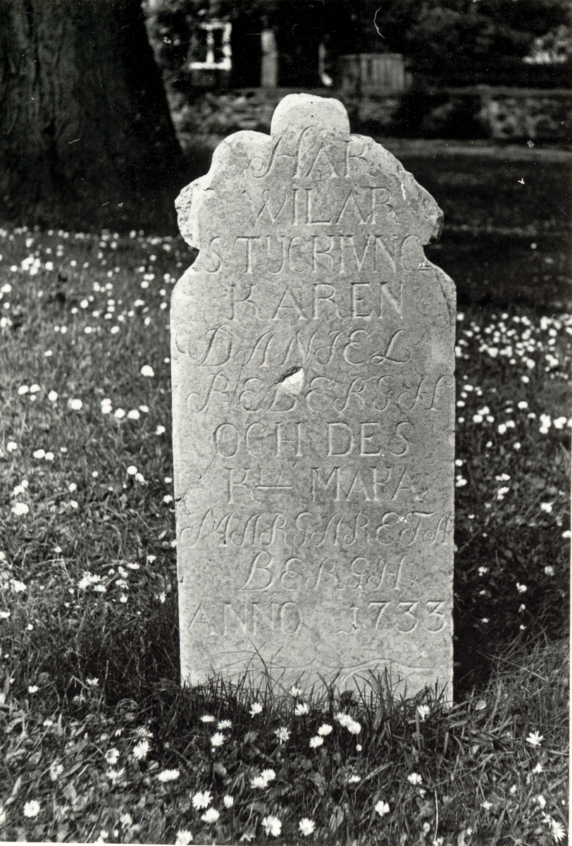 Text: Här wilar styckiunckaren Daniel Rebergh och des K:ra maka Margareta Bergh anno 1733.