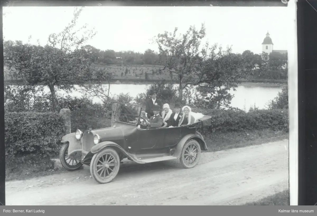 Gunvor Fransén från Blankaholm på utflykt med bil 1920.