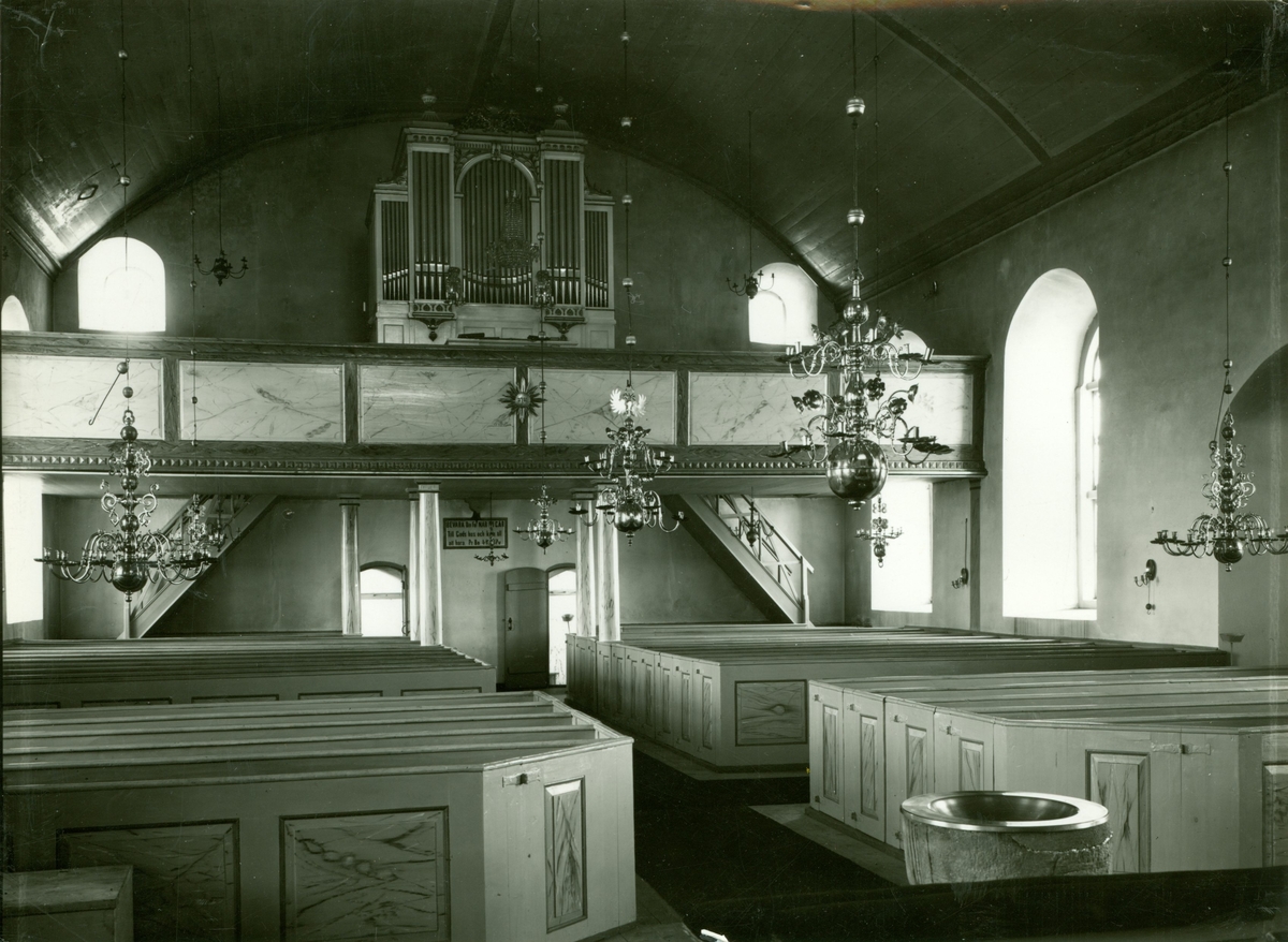 Hulterstads kyrkas mekaniska orgel, byggd 1868 av Per Larsson Åkerman. Orgelfasaden är utförd samma år efter ritningar av L. Hedin.