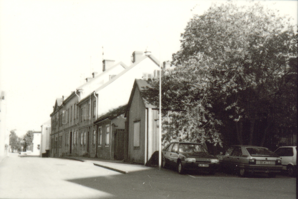 Bostadshus i kv Koljan på Södra Malmgatan. Husen är rivna förutom det längst bort.