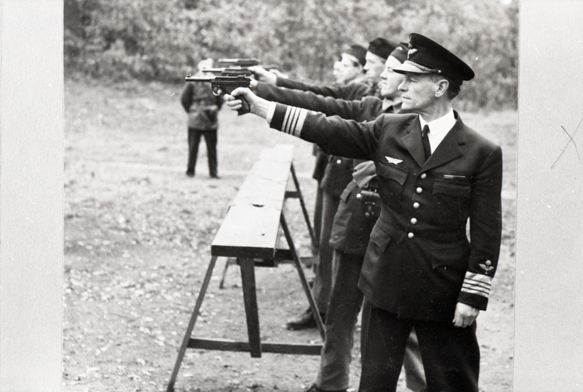 Kalmar, Törneby, F12. Skjutövning med handeldvapen, överste Carlgren närmast kameran.