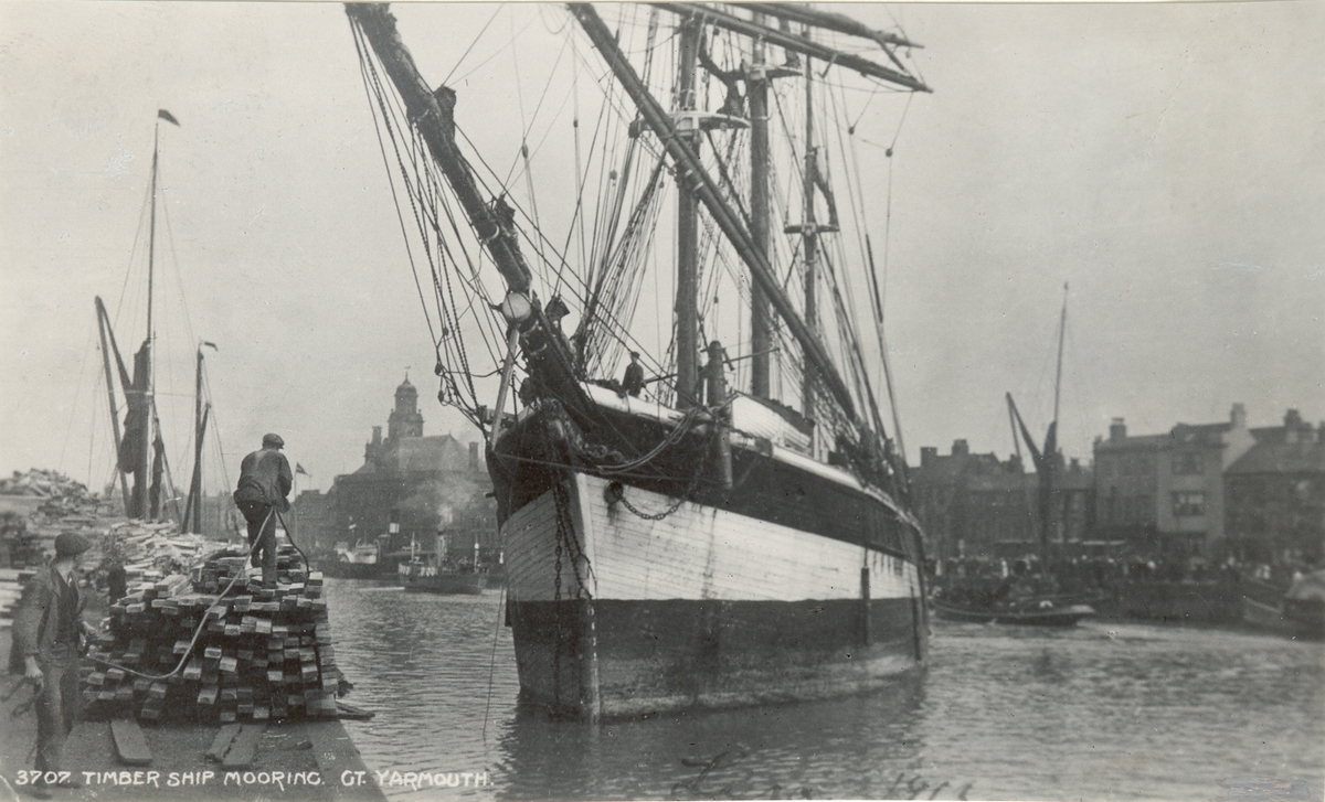 Titel: Lyra Skonarskepp, byggt 1890 i Arendal, Norge. Hemmahörande i Norge, men inköpt c:a 1903 till Bergkvara. Redare 1910, 1915 P.A. Karlsson, Bergkvara. Fördes av kapten Alb. Edwall, Söderåkra. Finns ej i skeppslistan 1917 under detta namn. Foto Yarmouth 1913. Kalmar museum. Inventarienummer 12508. Gåva av kapten A. Edwall.