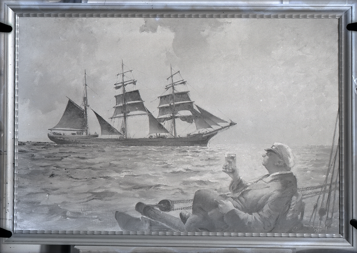 Målning av konstnären Ivan Hoflund, född 18 oktober 1887, död 8 augusti 1948 i Kalmar, begravd i Gärdslösa. Han var son till kyrkoherden i Gärdslösa på Öland Erik Hoflund och Therese Hultcrantz. Ur Walter Olsons negativsamling.