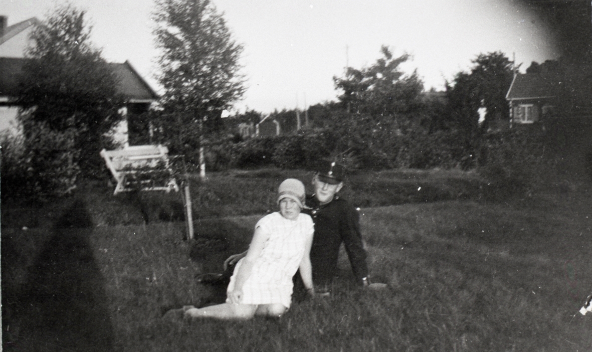 Lisa och Verner Carlsson, barn till Adolf och Ingeborg som var de första att bo i stationshuset där Adolf arbetade.