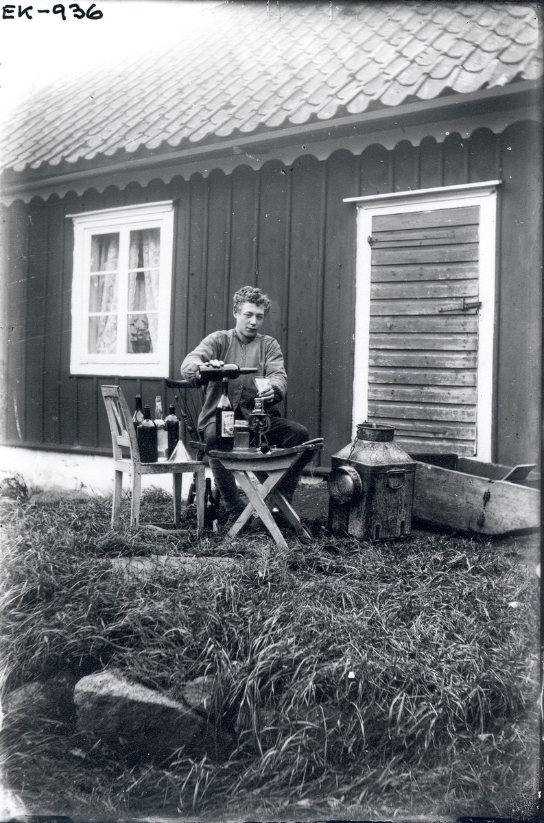 Elofs Karlsson (Emils bror) väger upp kemikalier till framkallning och fix.