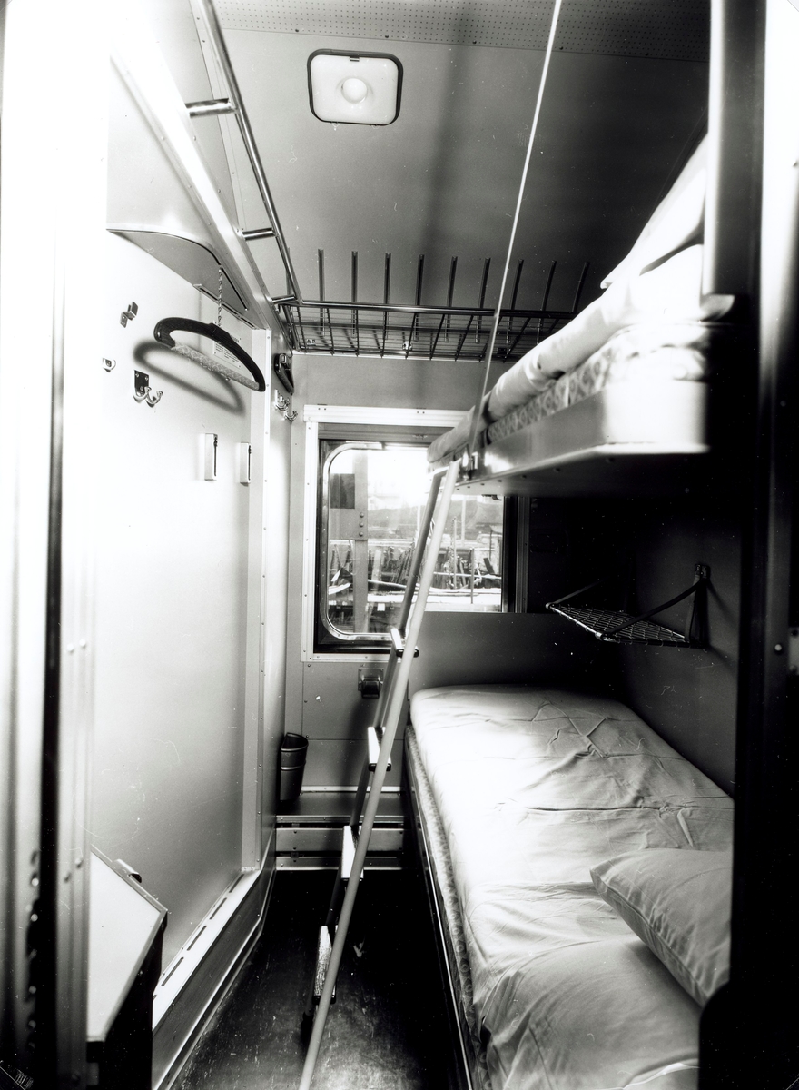 Sovkupé med våningssäng och bagagehylla. Från Kalmar Verkstads AB.
