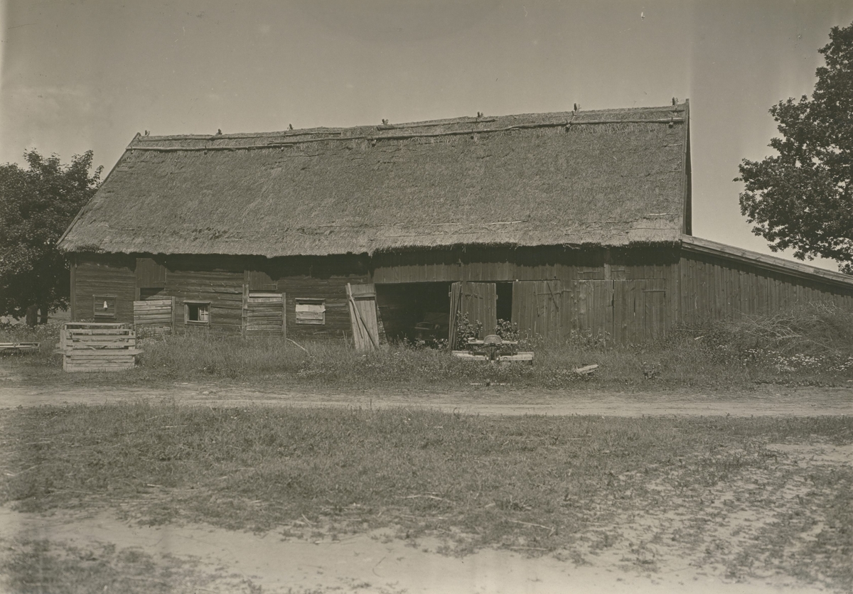 Gammal stallslänga i skiftesverk under bundet halmtak.