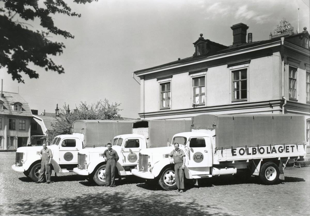 Lastbilar redo för leveranser hos AB EOL Köpmännens inköpscentral.