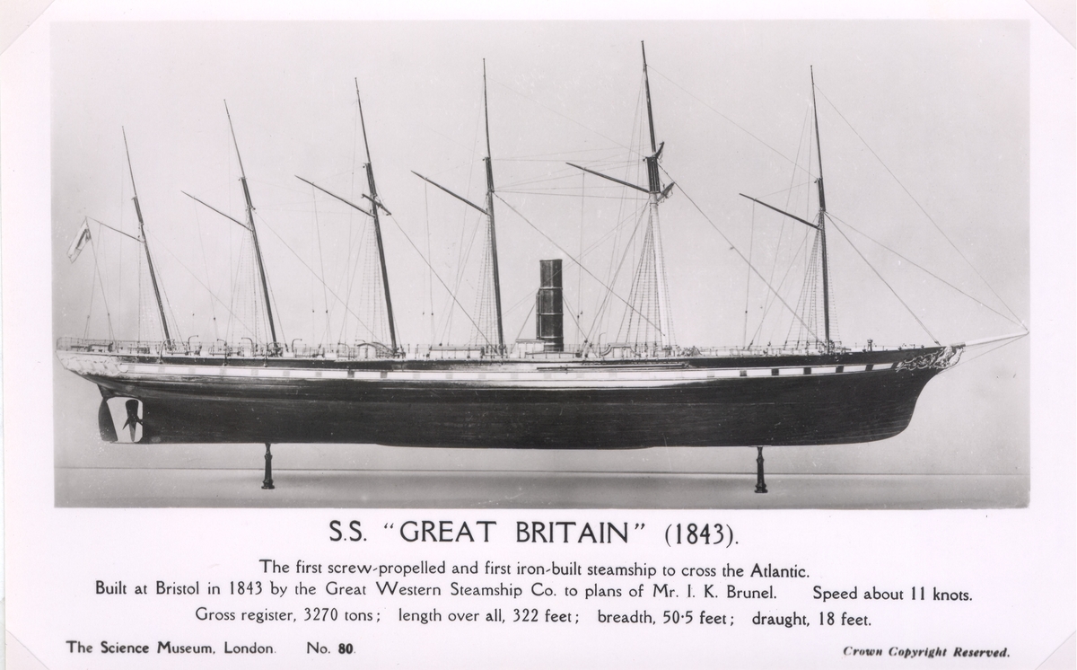 Modell av Ångfartyget SS Great Britain som byggdes i Bristol 1843.