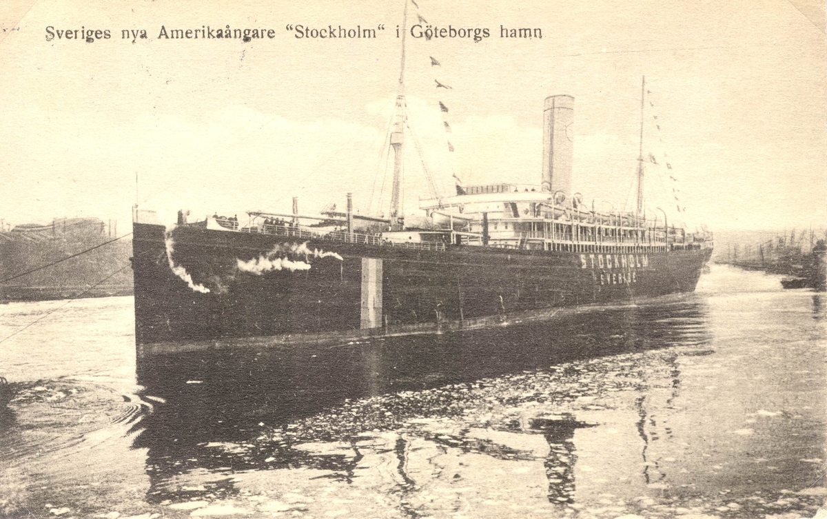 Sveriges nya Amerikaångare Stockholm i Göteborgs hamn.