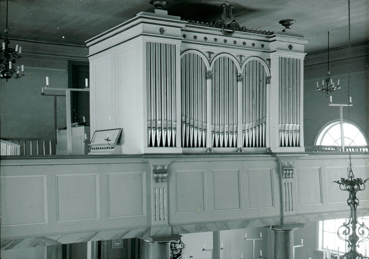 Läktarorgeln i Fliseryds kyrka. Orgelfasaden är från 1862, medan orgelverket ersattes 1959