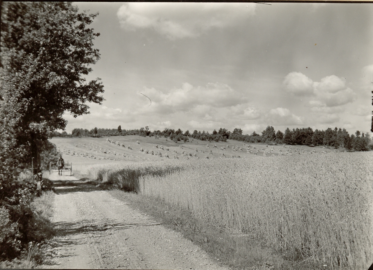Valåkra by. Mellangärdet mot Valåkraåsen. Till vänster buskage i ängarna.