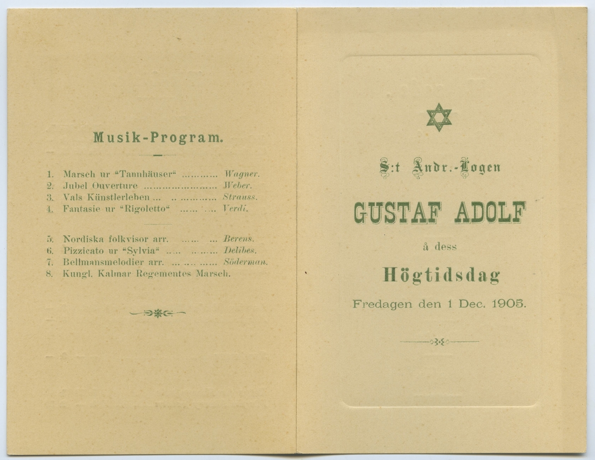 S:t. Andreas-logen Gustaf Adolf på dess högtidsdag. Fredagen den 1 Dec. 1905.