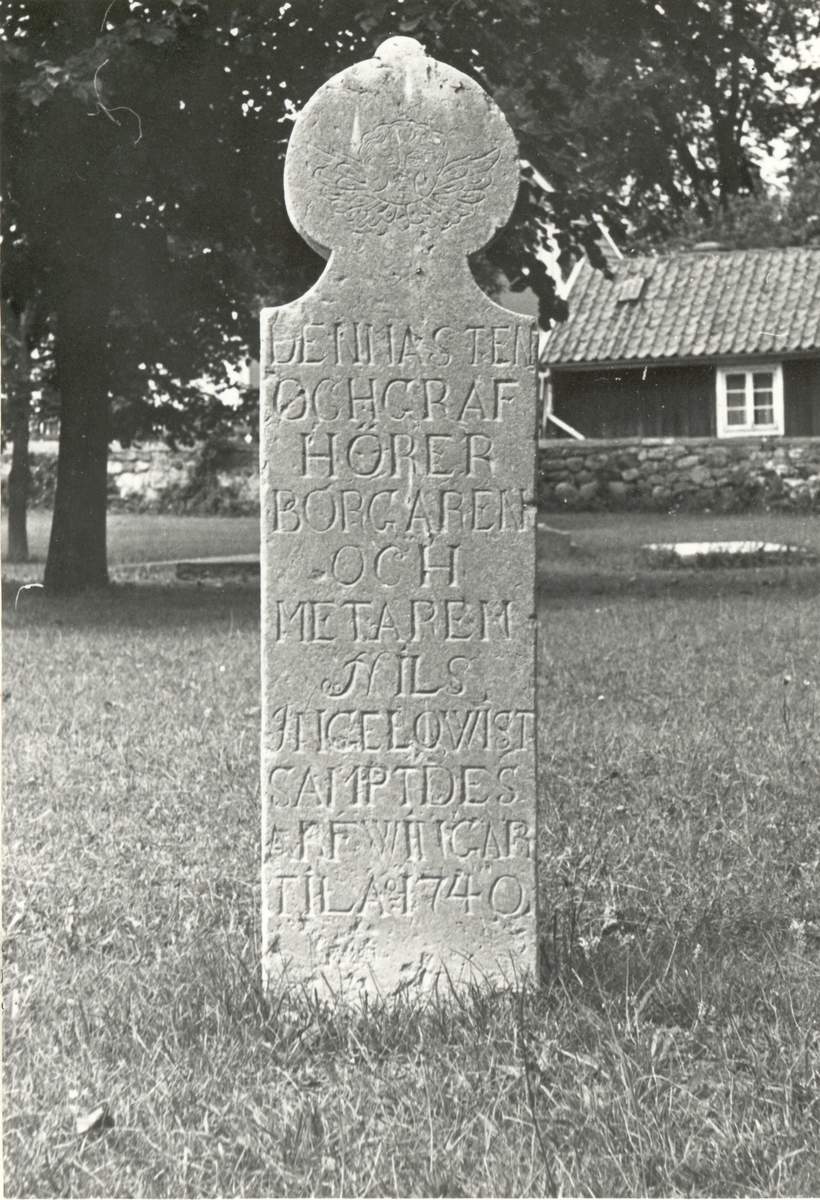 Text: Denna sten och graf hörer borgaren och metaren Nils Ingelqvist sampt des arfwingar till A:0 1740.