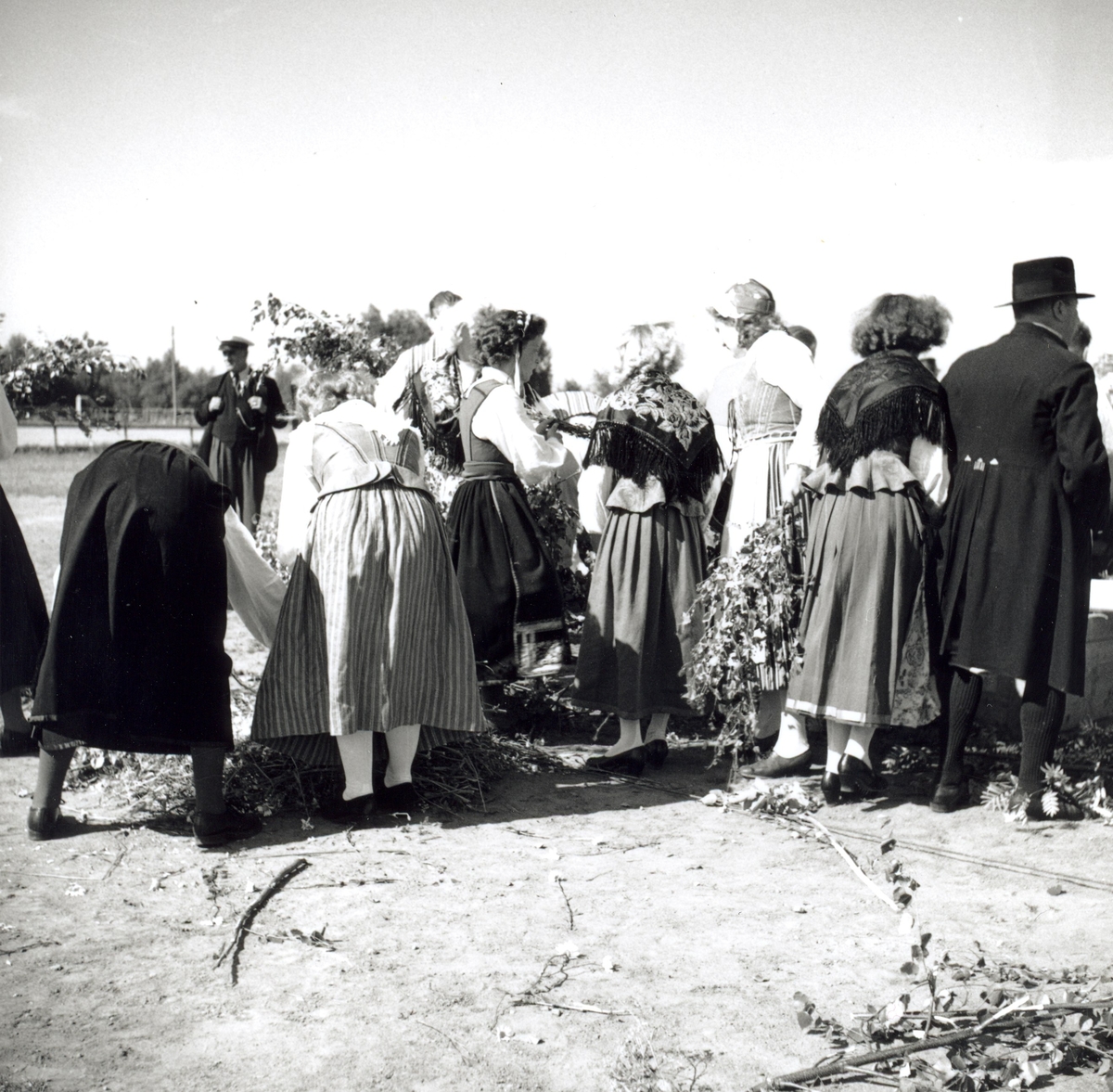 Kvinnor i folkdräkter under hantverksmässan i Kalmar 1947.