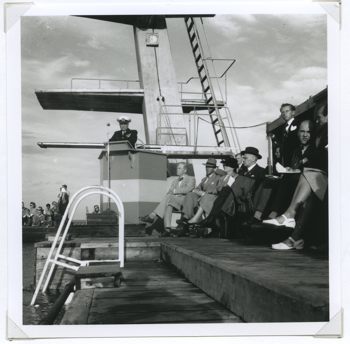 Räddningschef Florin i talarstolen i samband med SM i simning, som hölls vid Långviksbadet i Kalmar 1946.