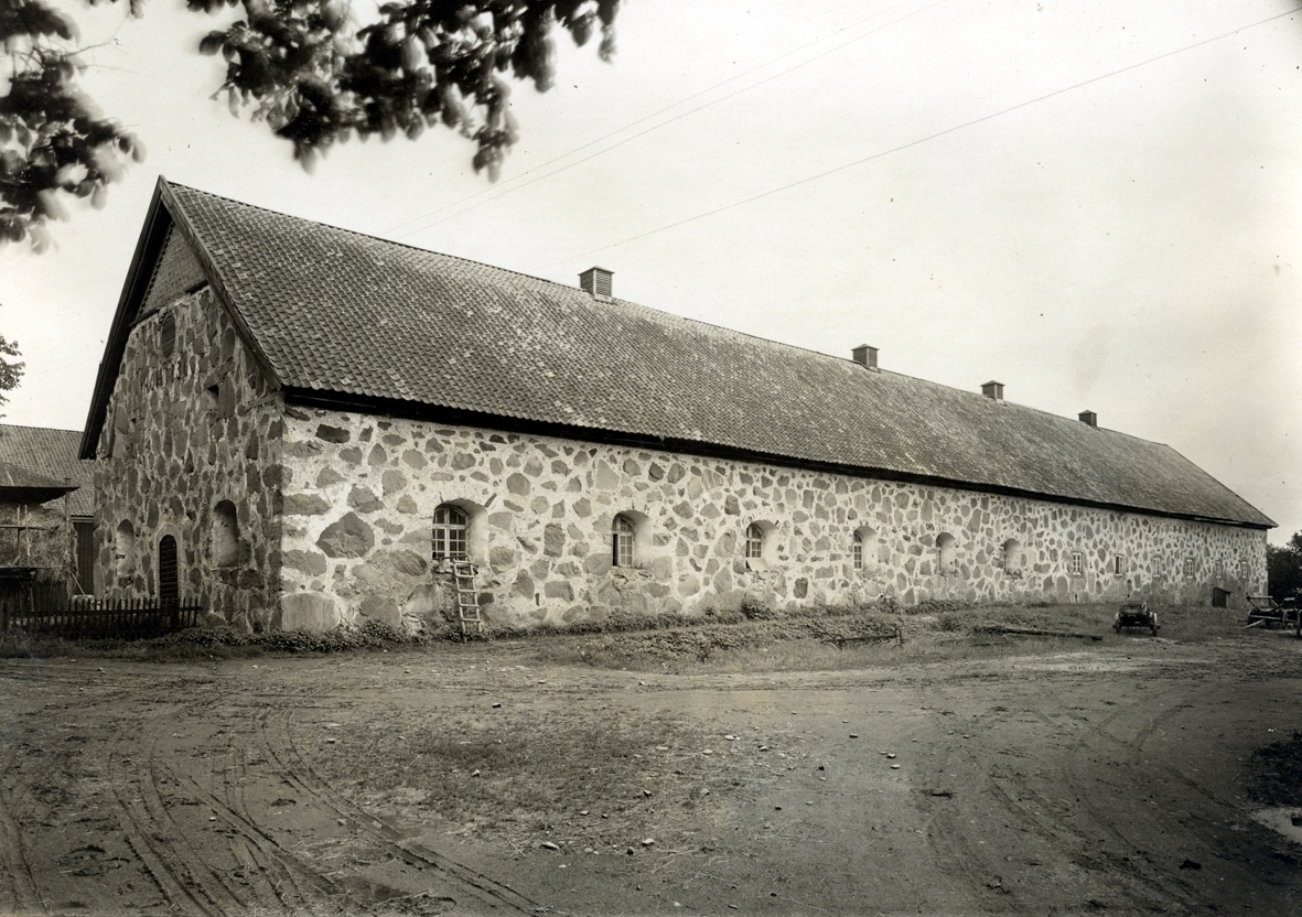 Ladugården och fähuset. På gaveln H O H 1830. (=H.O. Harmen). Ena delen av huset lär vara äldre.