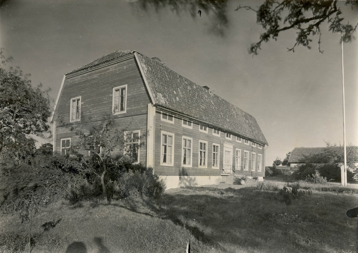 Huvudbyggnaden, uppförd 1815. Korsknutat timmer, röd. Liggande panel. Tandsnitt under taklisten. Under listen ligger en rad små halvfönster, varav flertalet är blindfönster.