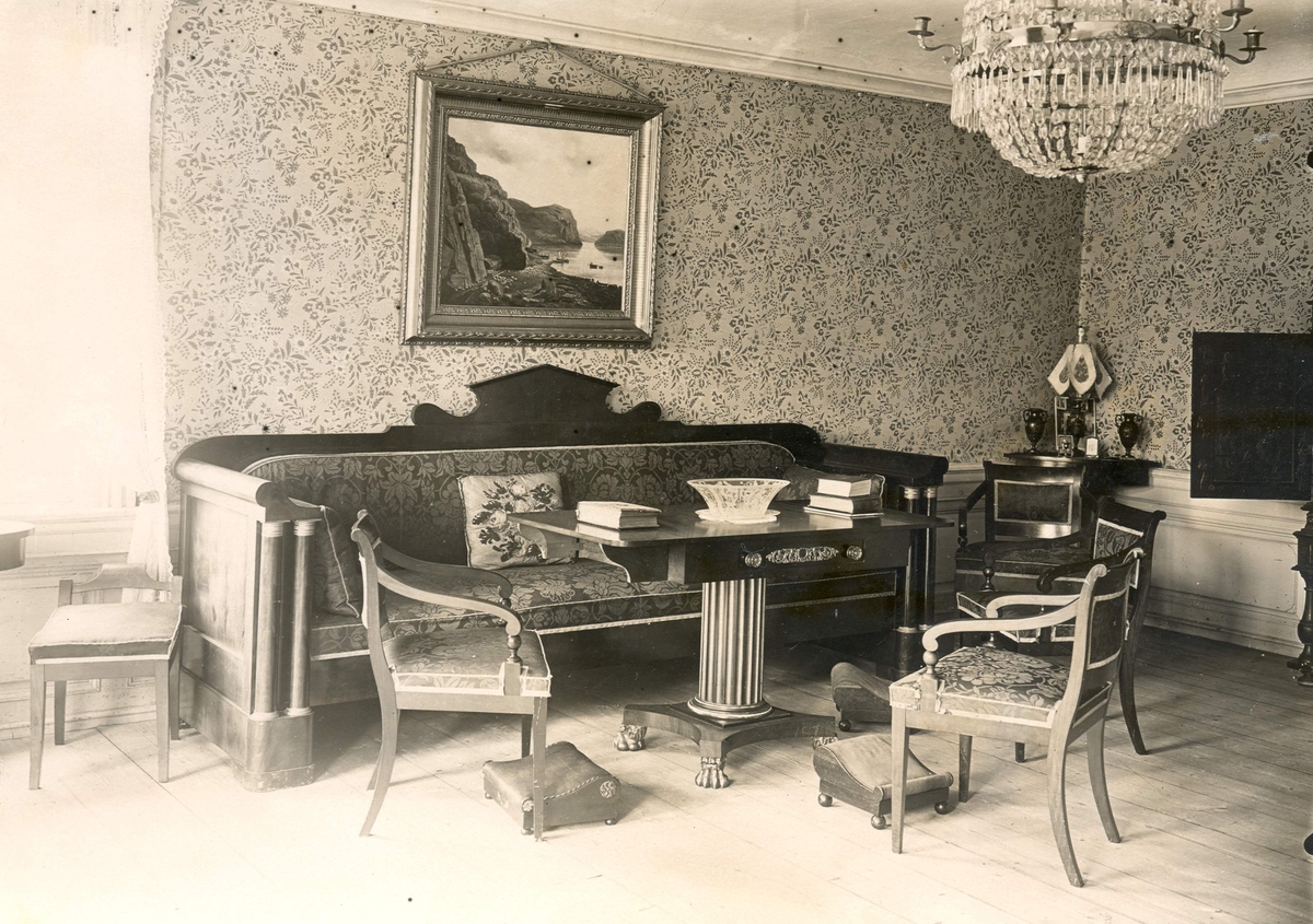 Interiörbild i mangårdsbyggnaden i Strömsrum, bottenvåningen. Ett hörnrum åt gården.
