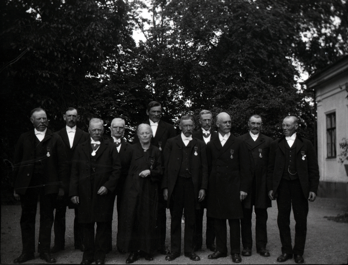Gruppbild på folk vid en medaljutdelning på Tuna gård.