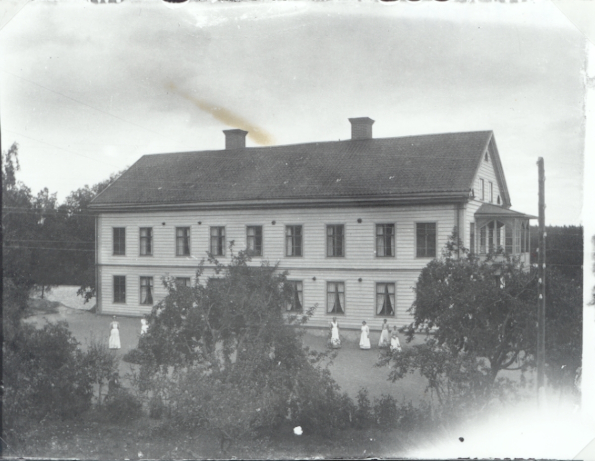 Sjukhemmet låg inne i Hjorted mittemot kyrkan. Fotot är taget ifrån vaktmästarbostaden.