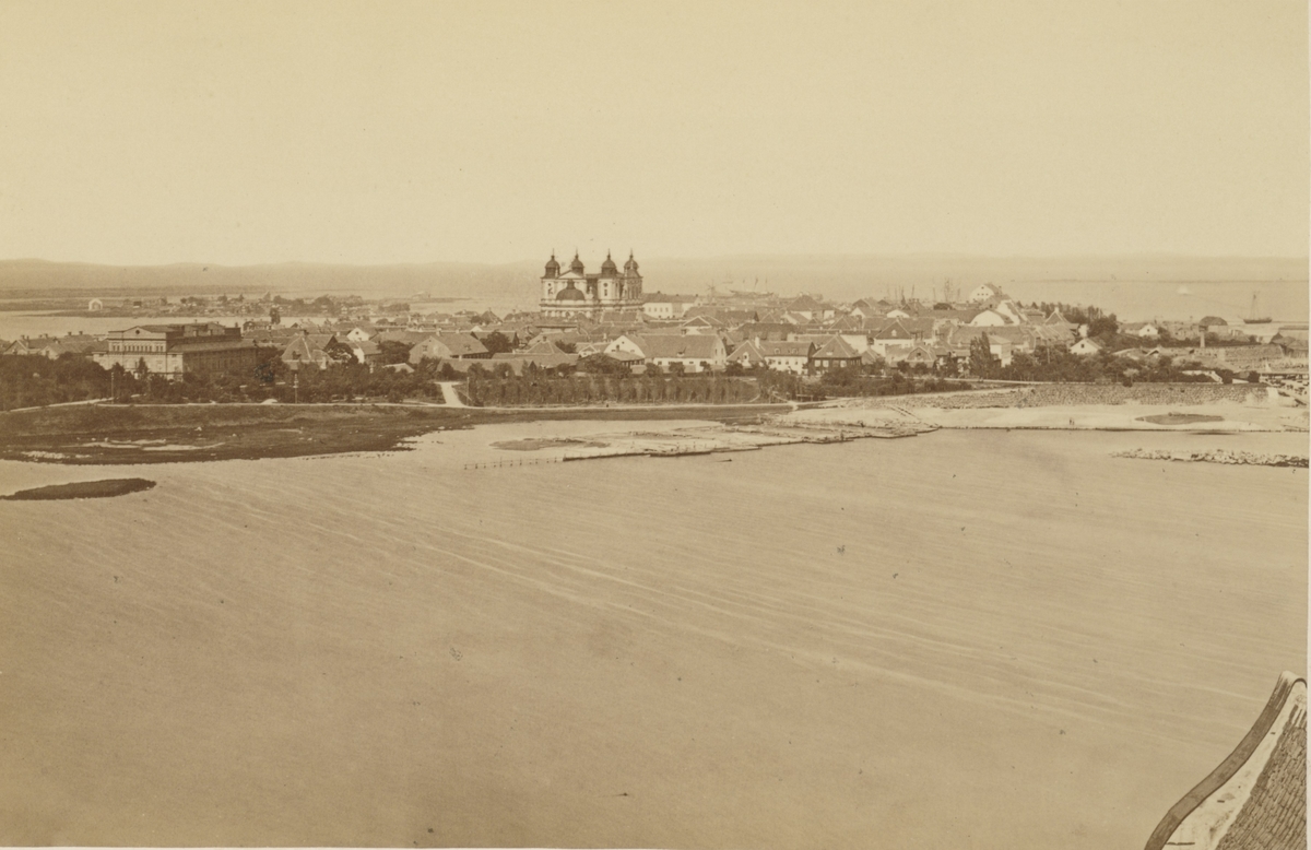 Bilden visar Kvarnholmen sedd från Kalmar slott. I förgrunden syns Slottsfjärden. Kalmar domkyrka framträder tydligt med en dominerande position. Till höger bortom domkyrkan anas Kalmar varv. I bildens vänstra del syns Ängö bortom Kvarnholmen. Märk trädplanteringarna hitom domkyrkan.