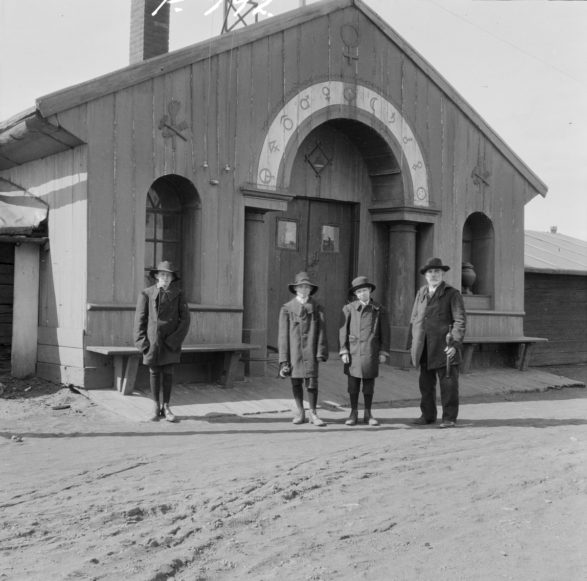 Falun, Anfarten vid Falu Gruva. stigare* Bergström med tre ynglingar på väg ner i gruvan.