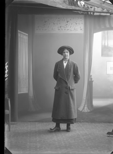 Kvinnoporträtt, ungdomsporträtt av flicka i hatt, ateljéfoto. Beställt av Ellen Johansson, möjligen samma person på fotot.