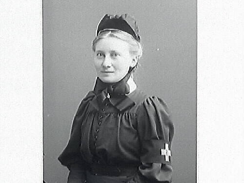 Sjuksköterska. Fröken Holmblad i mörk uniform.