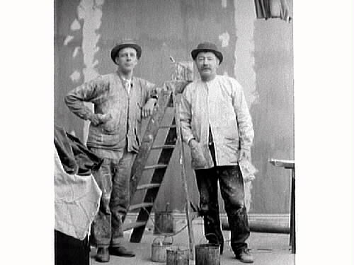 "Mannen till höger, med mustasch är Granelli, även känd i Varberg som tavelmålare (gåramålare)."